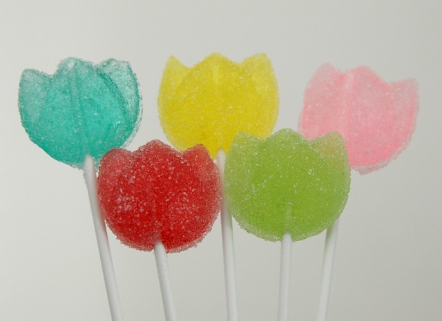 チューリップの形をしたお花の棒付きキャンディです。