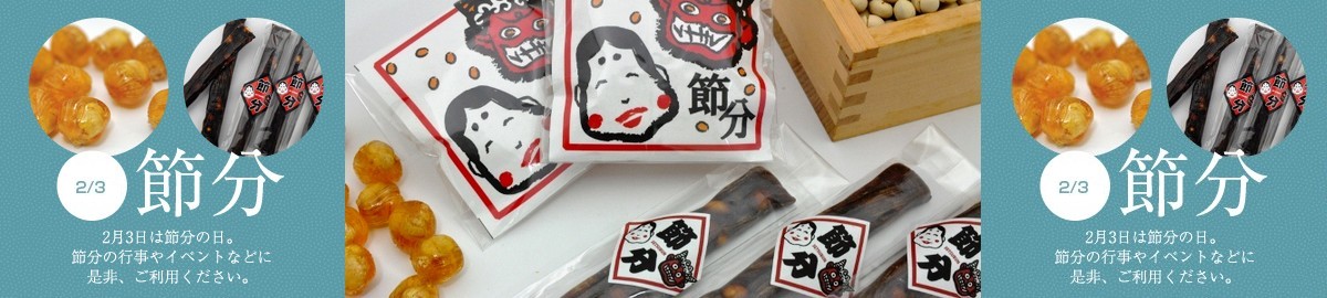 「福は内、鬼は外」2月3日は節分の日。節分に欠かせない豆を使用した飴菓子をご用意いたしております。節分の行事やイベントにぴったりです。