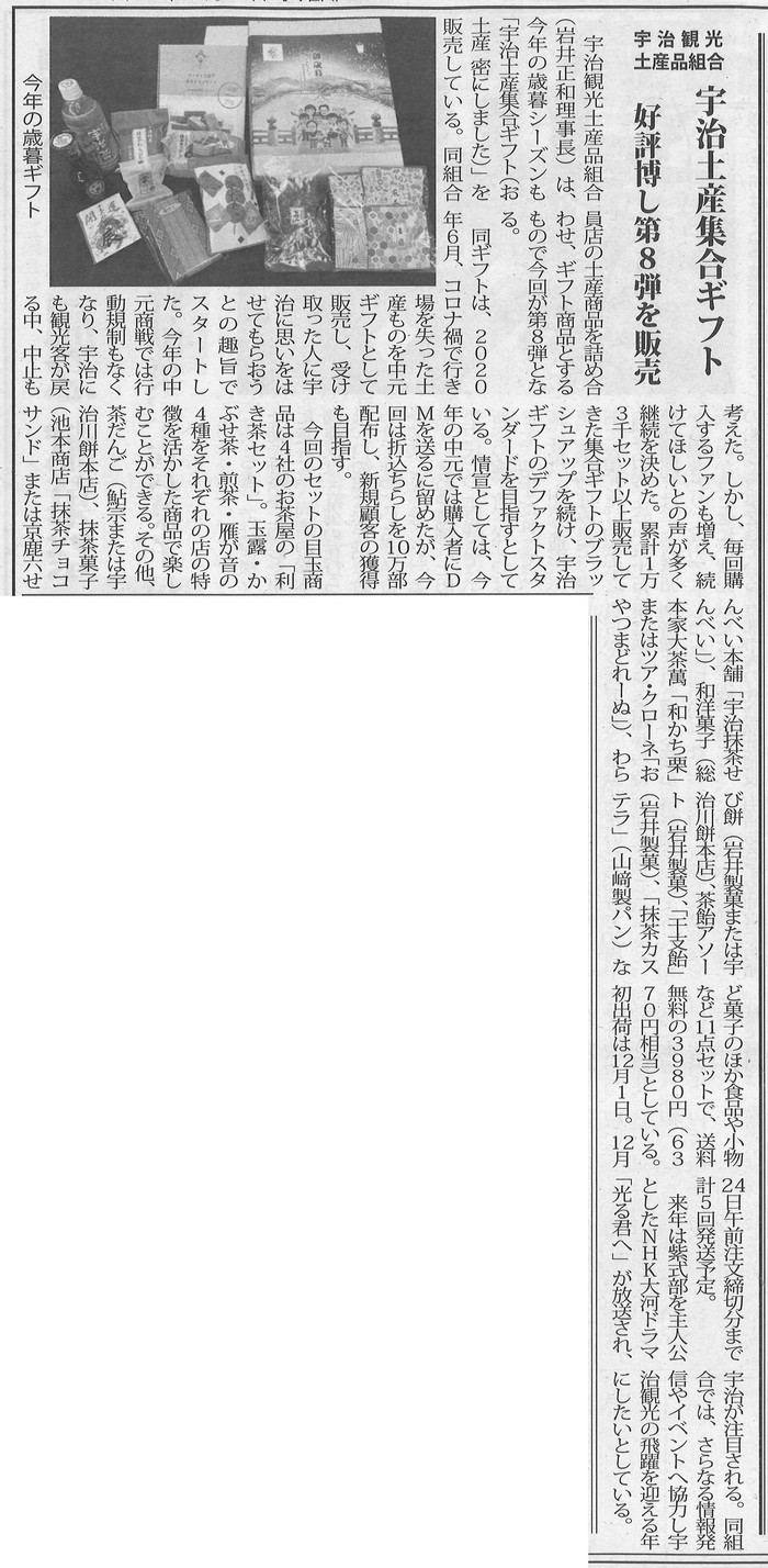 | 11月22日 毎日新聞にて宇治観光土産品組合による集合ギフト(第8弾)が掲載 |