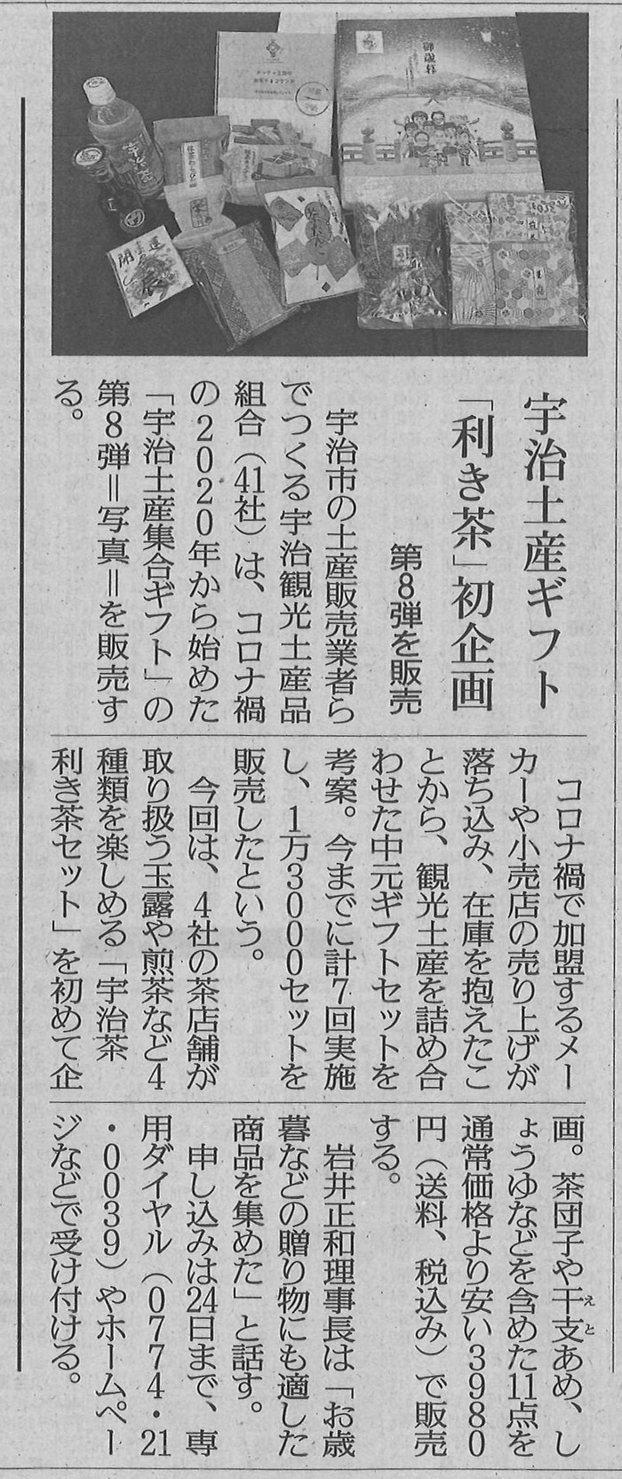 6月28日、京都新聞にて宇治観光土産品組合による第7回目のお中元ギフトが紹介されました。