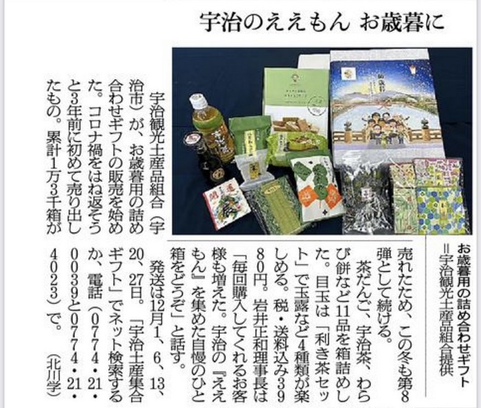 12月12日 読売新聞にて宇治観光土産品組合の集合ギフト(第8弾)が紹介されました。