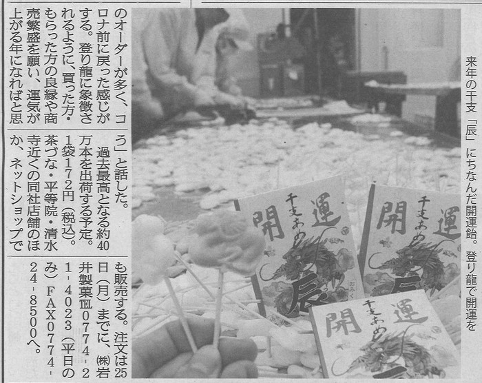 | 12月20日 毎日新聞にて岩井製菓の干支飴づくりが掲載 |