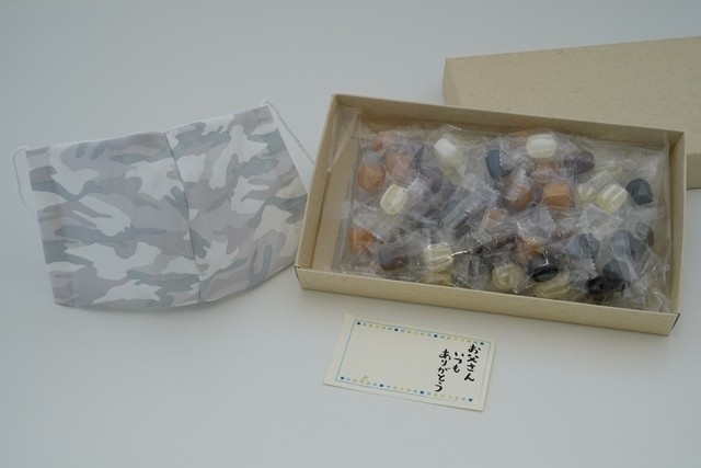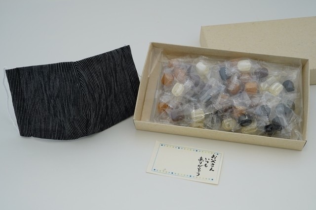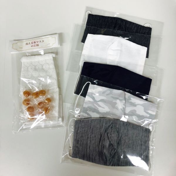 のど飴(生姜飴)と柄が選べるマスクのセット。