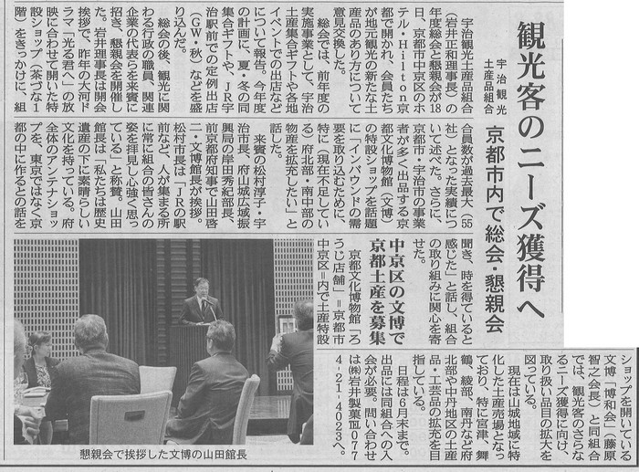 | 4月18日 産経新聞にて、観光土産品組合の京都文化博物館内の土産ショップについて掲載 |