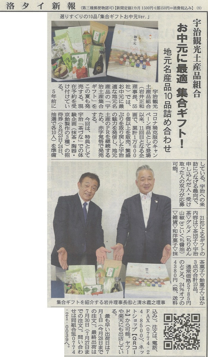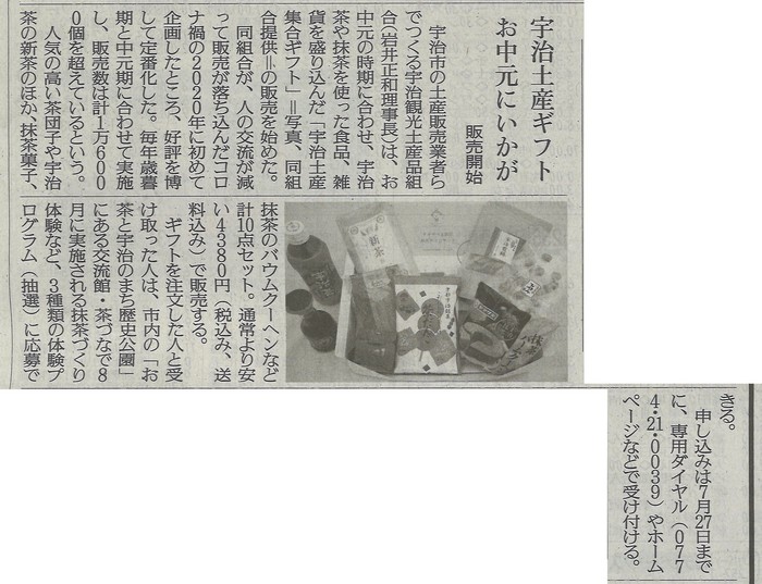 | 6月・7月 各新聞社にて宇治土産集合ギフト(お中元)について掲載 |